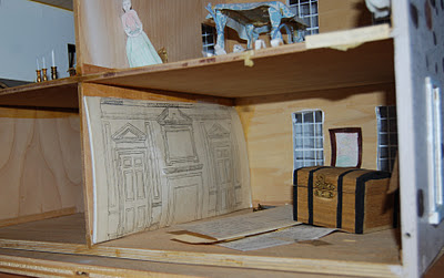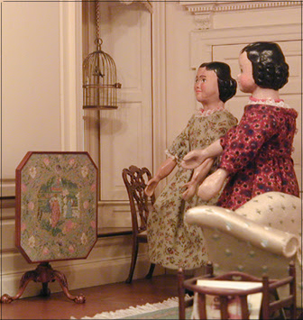 If you want to see some truly amazing detail work, look no further than the Drawing Room of Twin Manor. Seven years of research by William R. Robertson, and construction in conjunction with his mother Esther, culminated in two identical 1/12th scale houses (hence the name, Twin Manor), one of which is on permanent display at the Toy and Miniature Museum of Kansas City. The Robertson’s based their dream doll house on some of the finest examples of Georgian architecture from Virginia to Maine, and modeled their Drawing Room on those of Graeme Park and Fairmount Park’s Woodford.