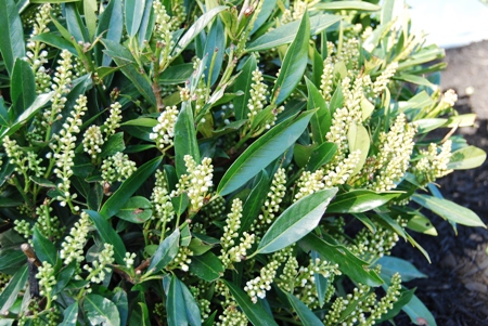 The rear of the tent has also been fancied up with red gravel around the existing trees, which were cleared out and cleaned up last year. Around the trees a bunch of rhododendrons have been planted and they should grow fairly large and fill in the area nicely with color and greenery. Further back a screen of forsythia will help disguise some of the brambles and additional seeding has been done in the areas where it looks like it is just dirt, so that should grow in nicely and give us a bright green lawn area back there too.
